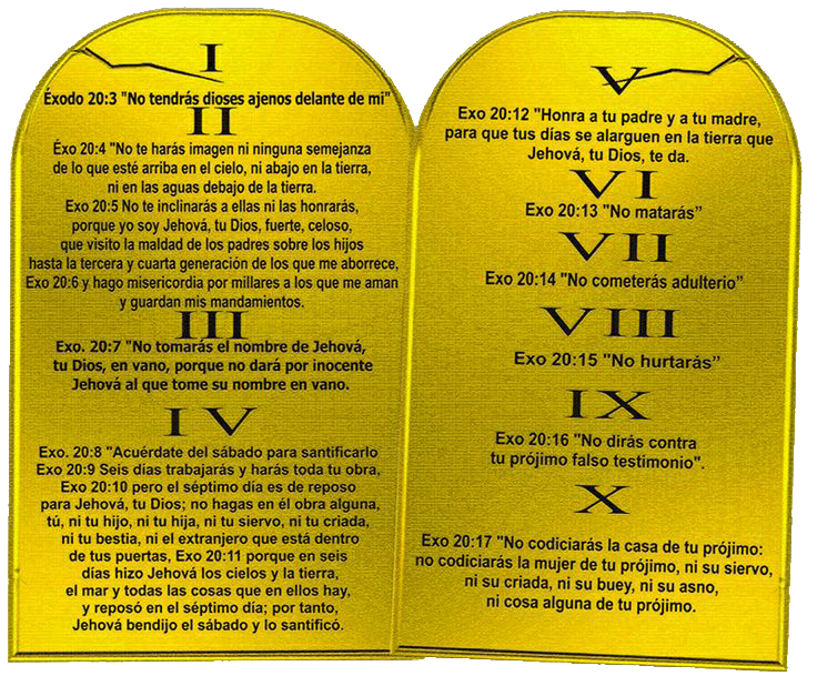 Dios le dio a Moisés dos tablas de piedra escritas con Su dedo. La primera tabla incluye cuatro mandamientos; estos primeros cuatro, tal como los encontramos en orden en la Biblia, están relacionados con Dios:
